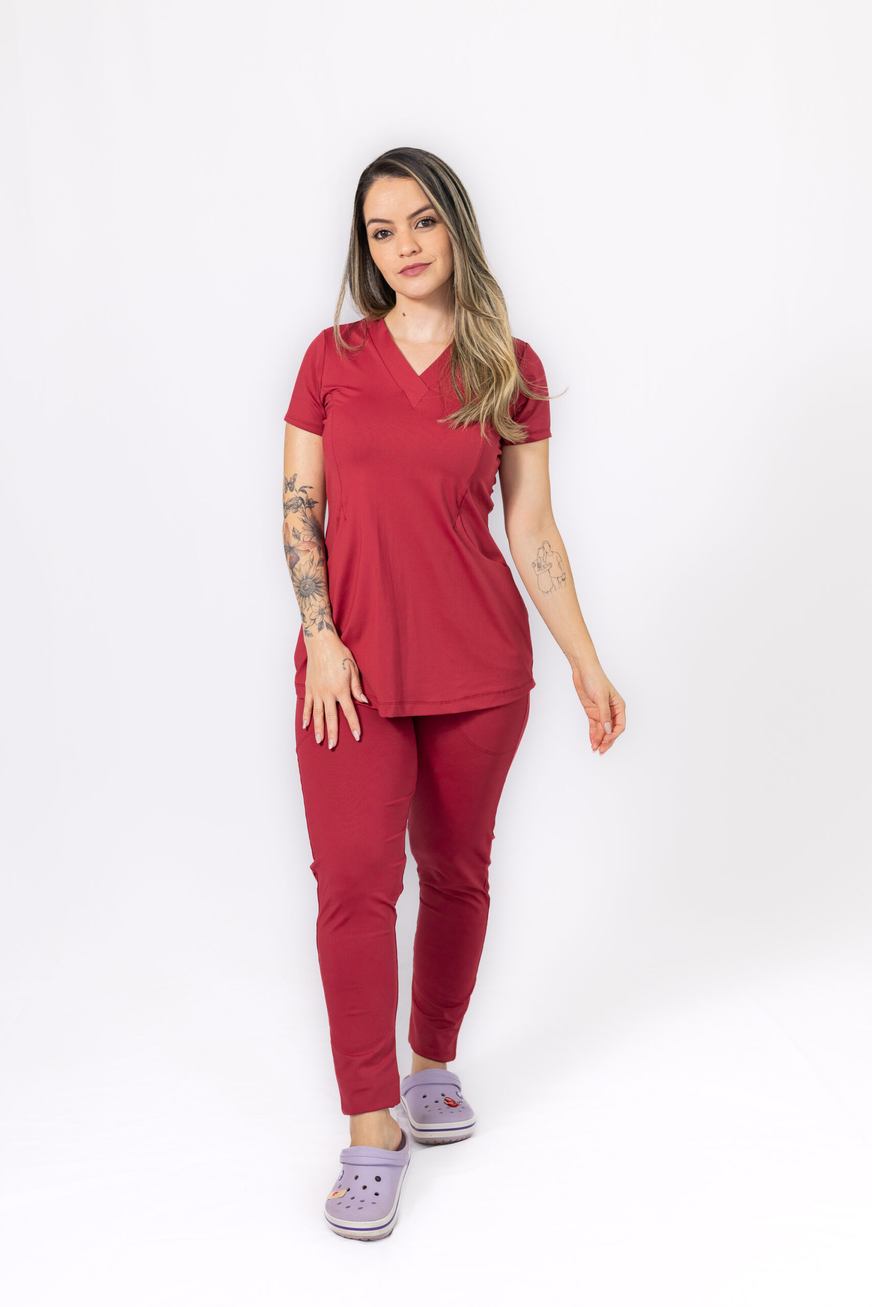 R$299,90Conjunto cirúrgico feminino (blusa e calça). Blusa com gola arredondada e 2 bolsos frontais.
