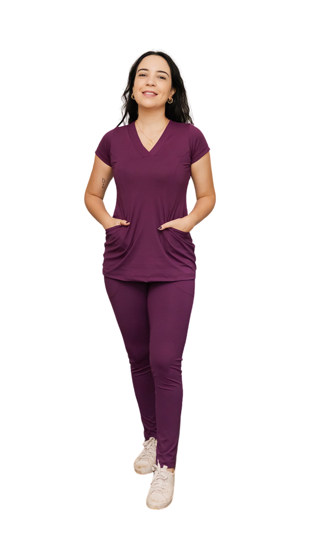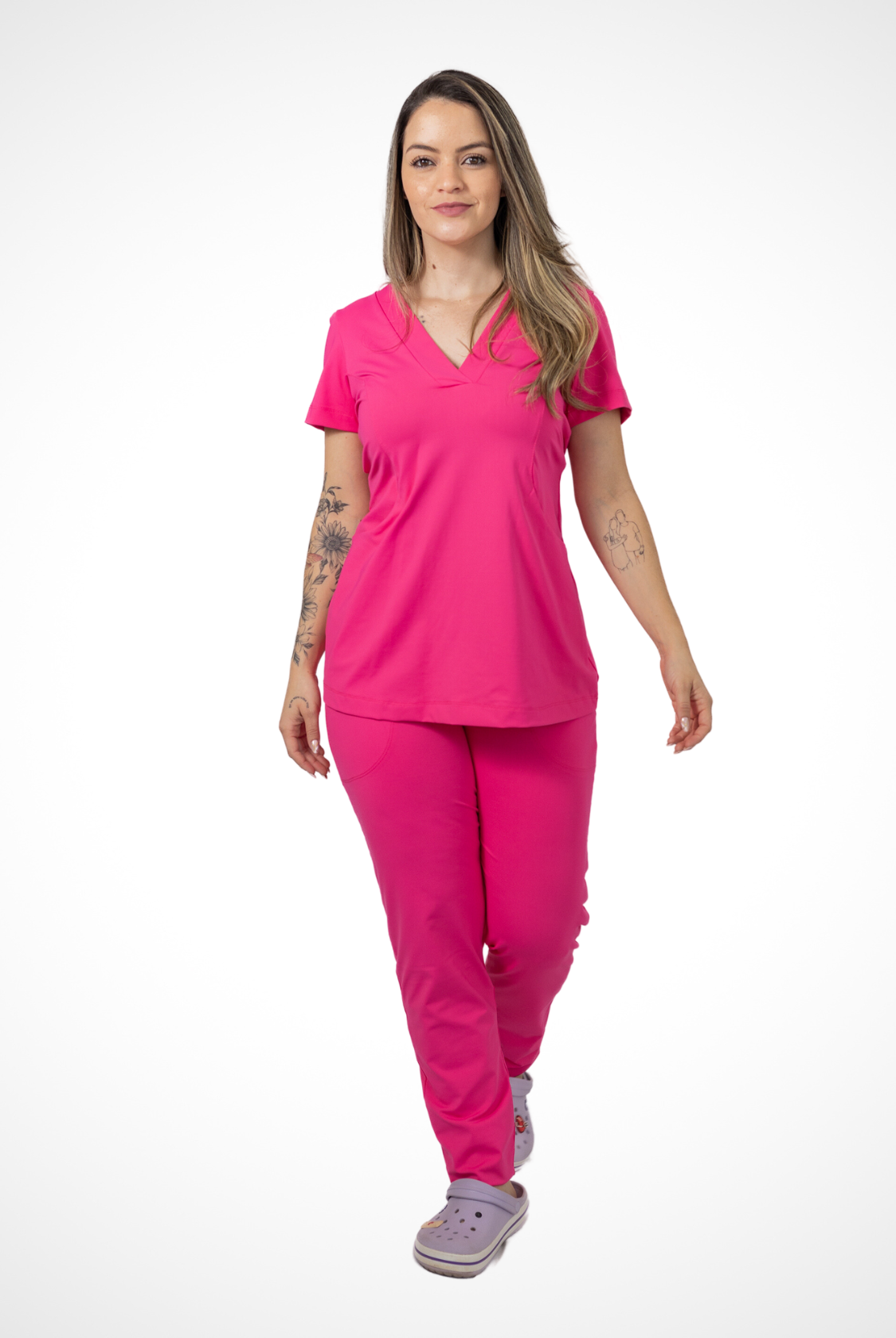 R$289,90Conjunto cirúrgico feminino (blusa e calça). Blusa com decote em V e bolsos frontais estilo canguru.