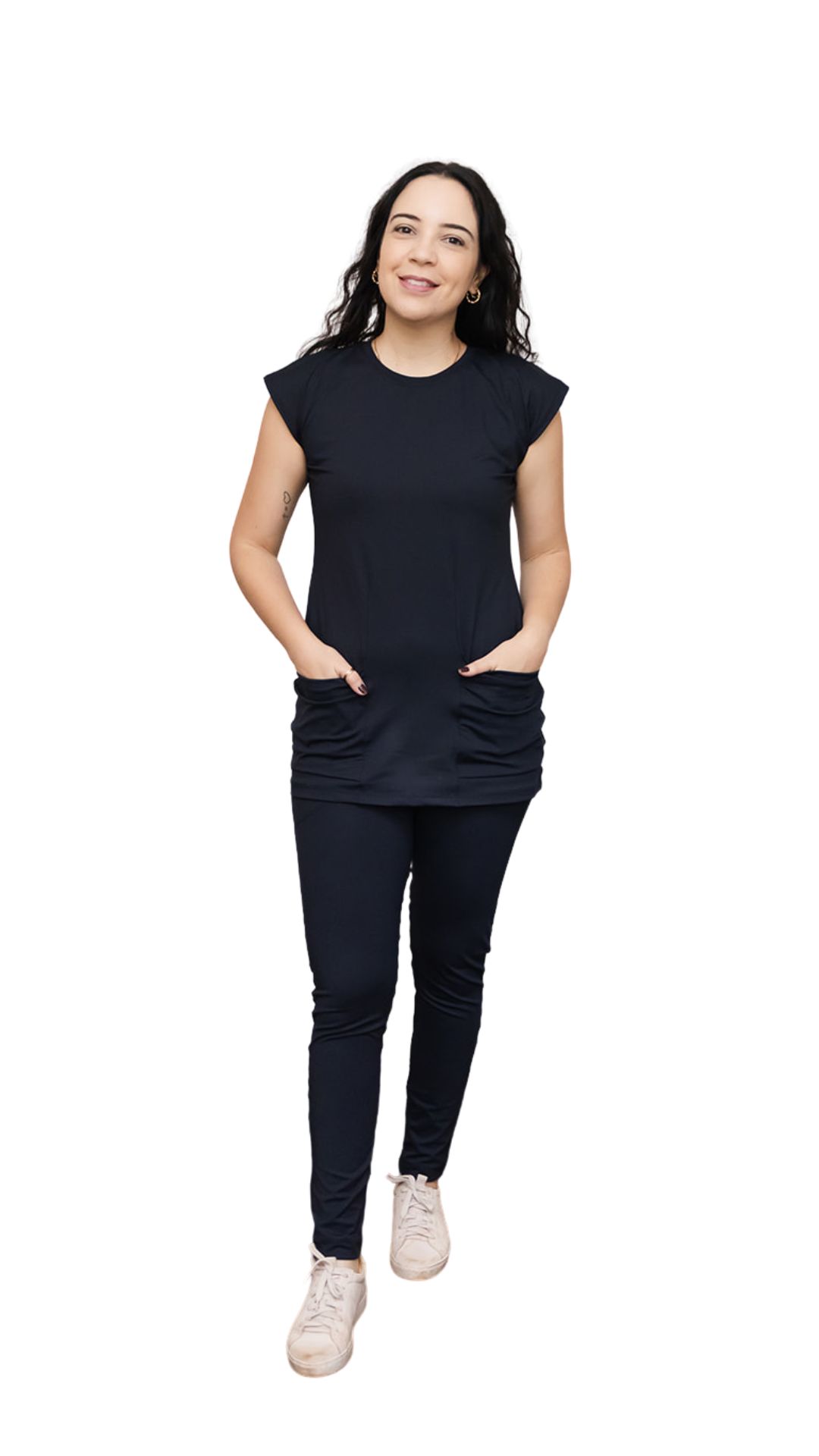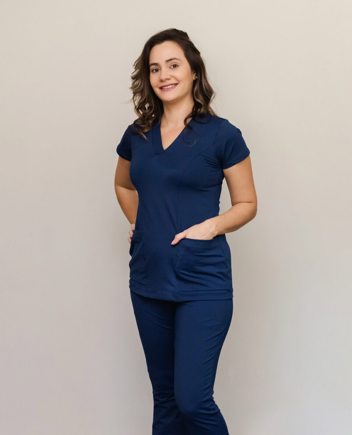 R$299,90Conjunto cirúrgico feminino (blusa e calça). Blusa com gola arredondada e 2 bolsos frontais.